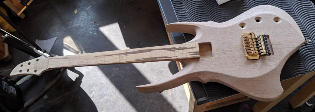 Wir erhalten die fertig lackierten Korpi mit eingeleimtem Hals, die wir
